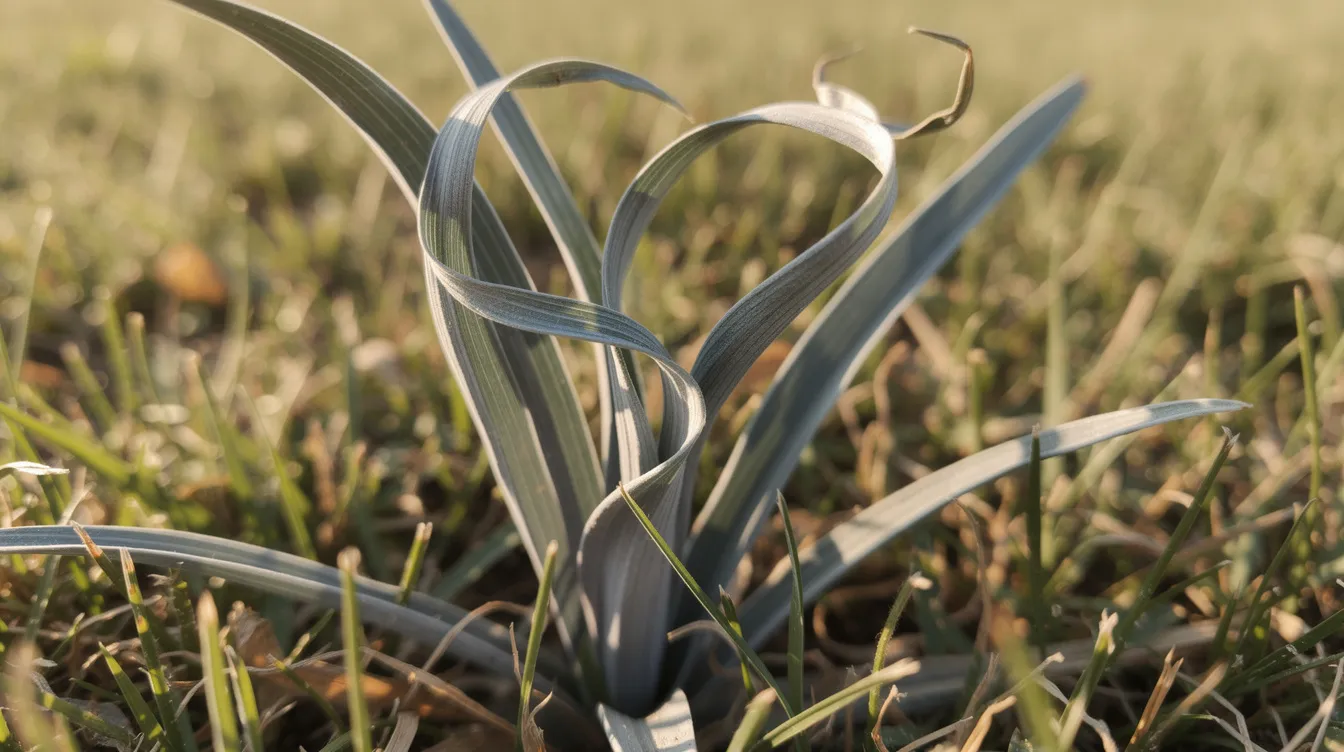 - Blade behavior: Grass blades folding, curling, or rolling inward indicate the plant is reducing surface area to slow moisture loss